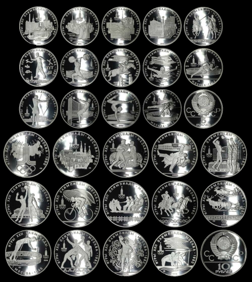 С 1977 года по 1980 год была выпущена серия из 45 монет, посвящённых Олимпийским играм 1980: