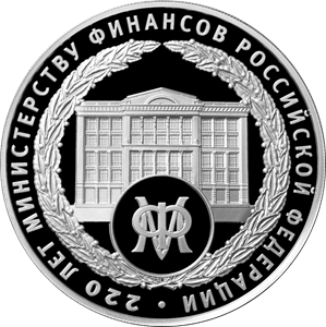 Серебряная монета 3 рубля "220-летие образования Министерства финансов Российской Федерации" 2022г., 31,1 г. 925 проба, ПРУФ