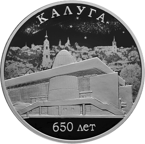 Серебряная монета 3 рубля "650-летие основания г. Калуги" 2021г., 31,1 г. 925 проба, ПРУФ