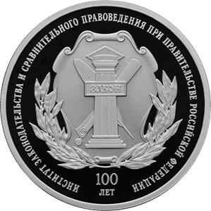 Серебряная монета 3 рубля "100-летие основания федерального государственного научно-исследовательского учреждения «Институт законодательства и сравнительного правоведения при Правительстве Российской Федерации»" 31,1г., Ag 925, Proof, 2023г.