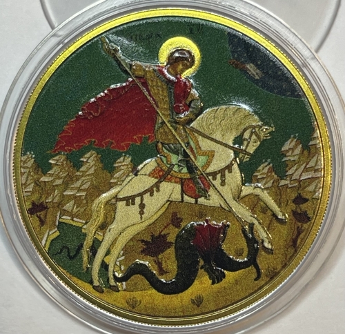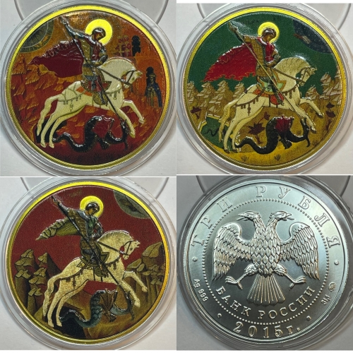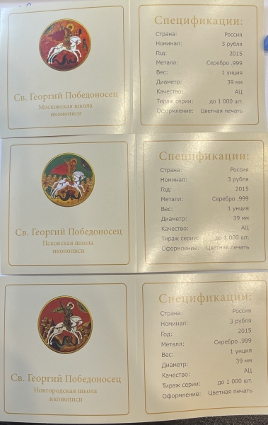 Набор серебряных монет 3 рубля "Георгий Победоносец" в спец исполнении, 2015 год, ММД