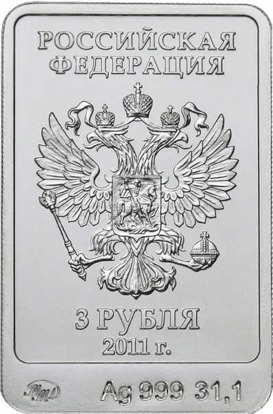• Серебряная монета 3 рубля Леопард серии XXII Олимпийские зимние игры и XI Паралимпийские зимние игры 2014 года в Сочи выпущена ЦБ России 27 декабря 2011 года. Монета имеет прямоугольную форму с закругленными углами. Леопард – официальный Талисман зимней Олимпиады 2014 в Сочи.