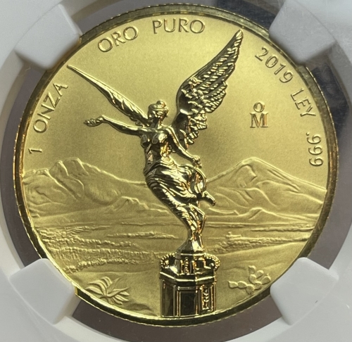 Золотая инвестиционная монета Мексики "Либертад" (Свобода) 31,1 грамм 2019 год, В СЛАБЕ NGC REVERS PF 70