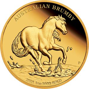 Золотая монета 100 долларов "Австралийский Брамби" 2021г., Австралия, 31,1г., Au 9999