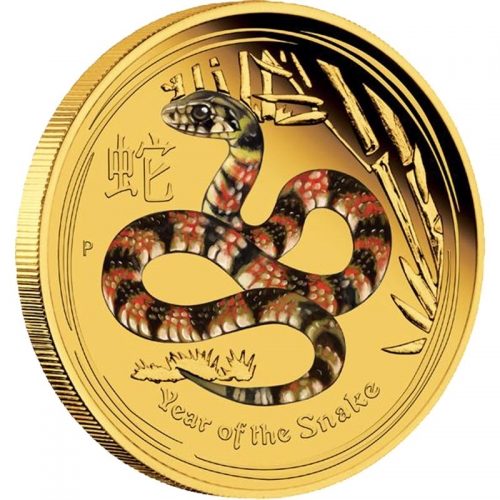 Золотая монета 25 долларов "Год Змеи" 2013 г., Лунный календарь, Au 9999, 7,78 г., Австралия