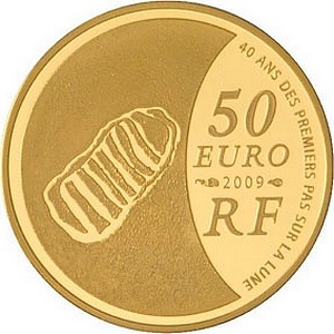 Продолжает астрономическую тематику Французская Республика. Дело в том, что в 2009 году отмечается еще и 40-летний юбилей первой высадки человека на Луну. Парижский монетный двор выпустил первую в мире серию монет выпуклой формы, запечатлев след ноги астронавта в металле.