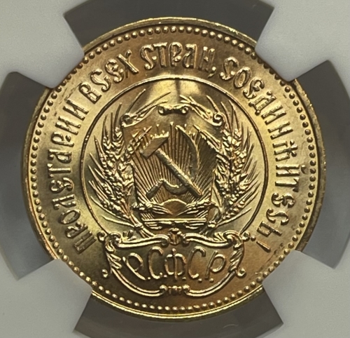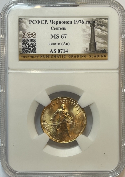 Золотая монета Червонец Сеятель 1976г., в слабе NGS MS 67