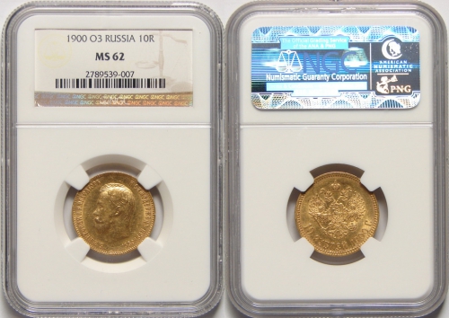 Вы всегда можете купить или продать, а также узнать текущую стоимость монеты - 'Золотая монета Николая II 10 рублей 1900 год состояние MS 62' в г.Саратов (Саратовская область). У нас Вы получите полную и необходимую консультация от квалифицированных специалистов и профессионалов, работающих на рынке инвестиций в драгметаллы уже долгое время. Мы стараемся предложить нашим клиентам лучшие цены выкупа и продажи на рынке (с минимальным спредом), а также гарантируем конфиденциальность всех проводимых сделок.